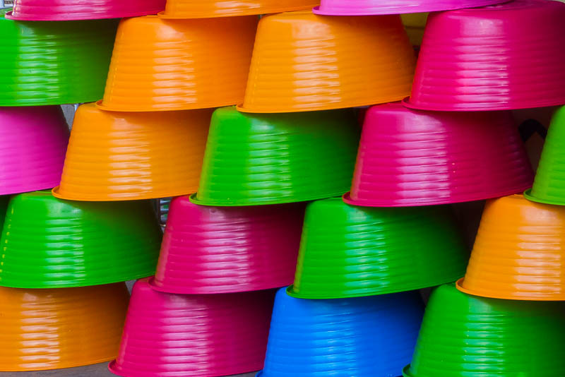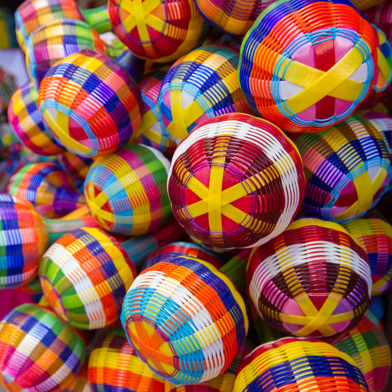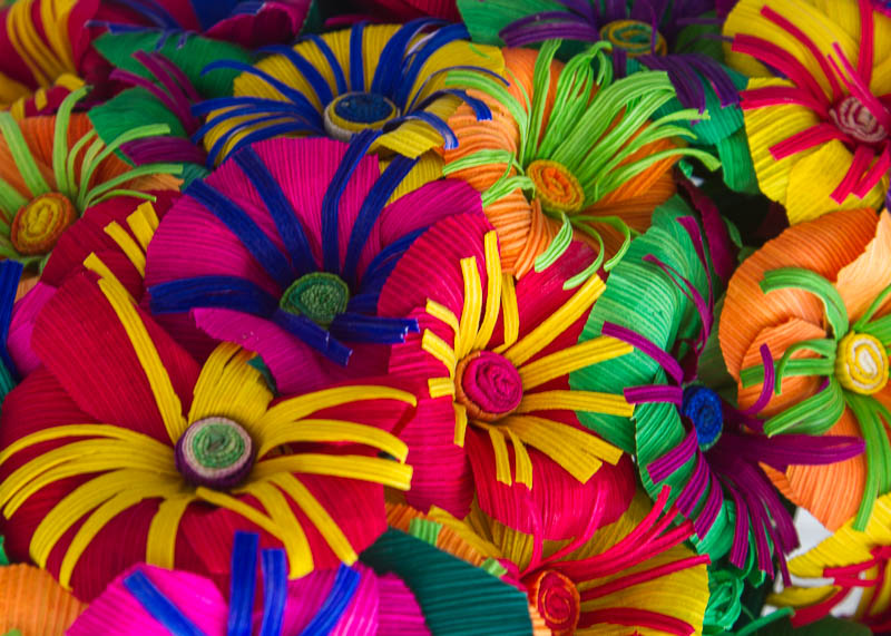 While many scenes in Mexico can be neatly tied to a single color, many of the objects that draw a photographer's eye are too rich in bright, saturated colors to fall into an easily definable color category. These objects can range from close-ups of small items to grand scenes encompassing hundreds of objects.